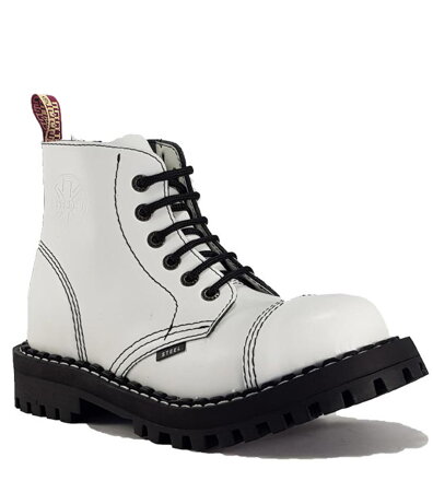 Steel Boots 8 Eyelets White, leather vamp, hardened rubber sole, triple stitch, steel toe, fleece...