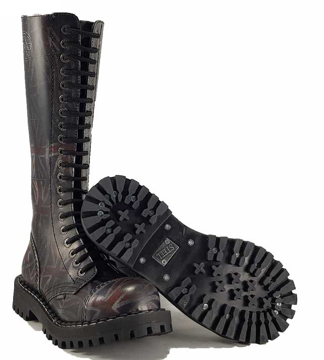 Steel Boots 15 Eyelets UK Flag Rub Off